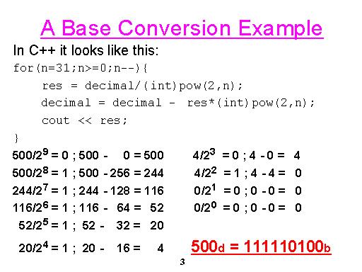 - Convert the number to binary using the following algorithm:
